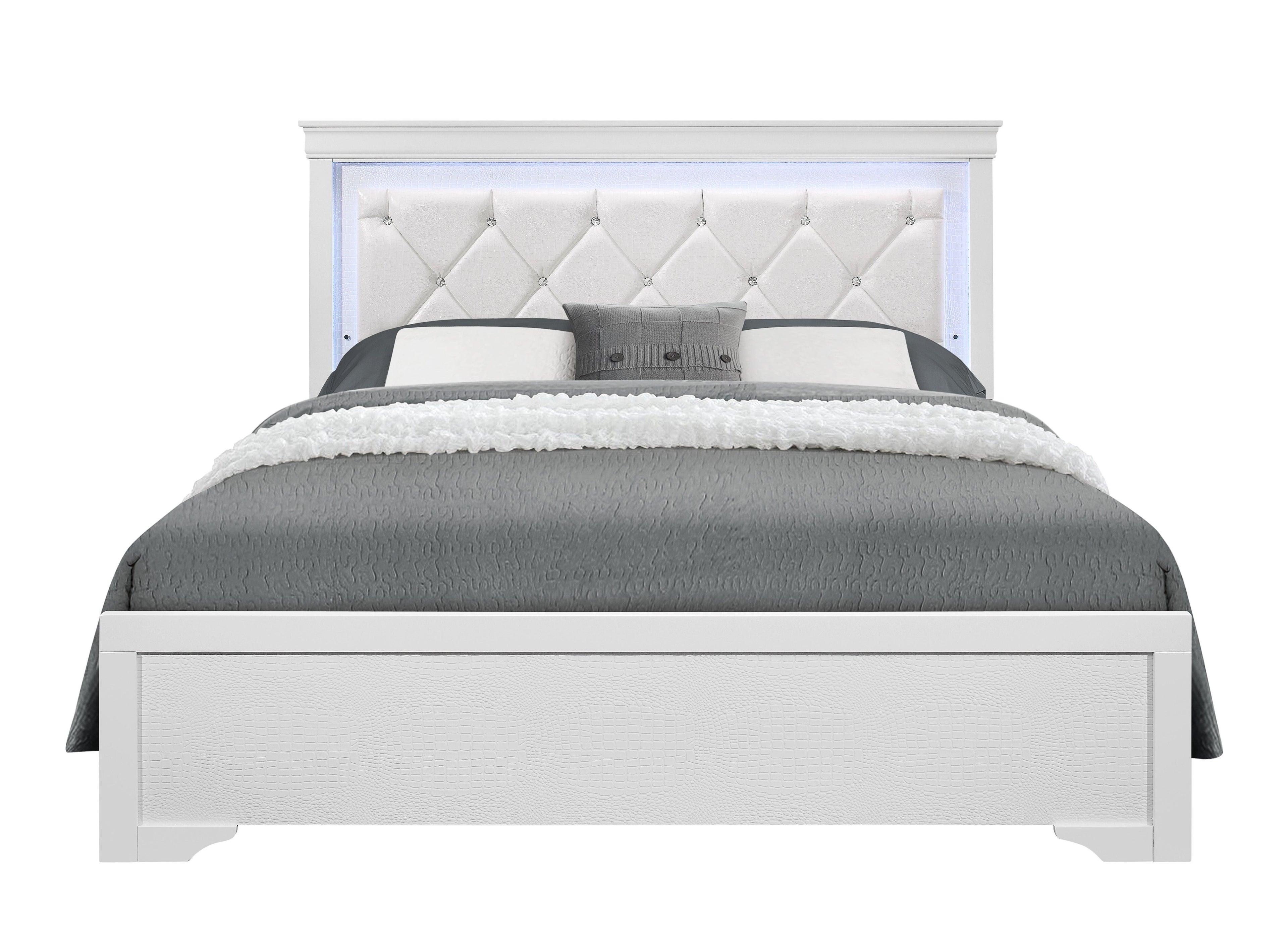 Shaker - Crocodile Queen Bed With LED - White