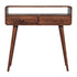 • Artisan Furniture Solid Wood Curved Console Table, 2 drawer - This simple, elegant console table has beautifully curved edges to fit perfectly in any living space, this 100% solid mango wood unit has been built with sustainably sourced timbers and has two drawers and 1 open slot to help you keep your home organized and storage for any little household objects. It has shiny knobs and has a fine finish with 4 Nordic style legs.