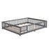 Solid Wood Full Size Floor Bed With Door And Fence For Children, Pine Wood Construction - Gray