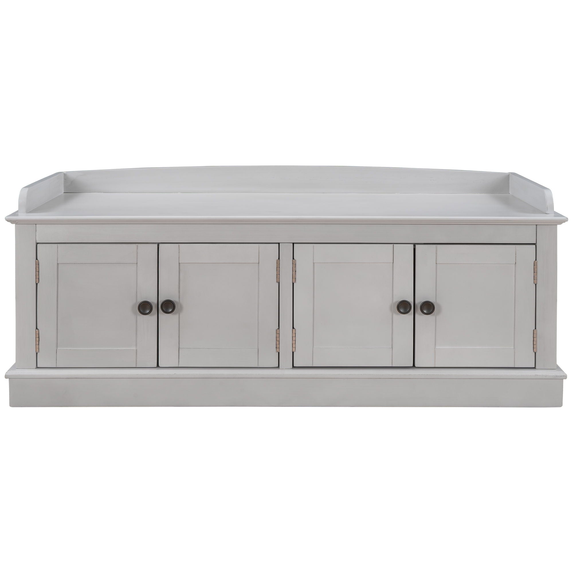 Storage Bench With 4 Doors And Adjustable Shelves, Shoe Bench With Removable Cushion For Living Room, Entryway - Gray Wash