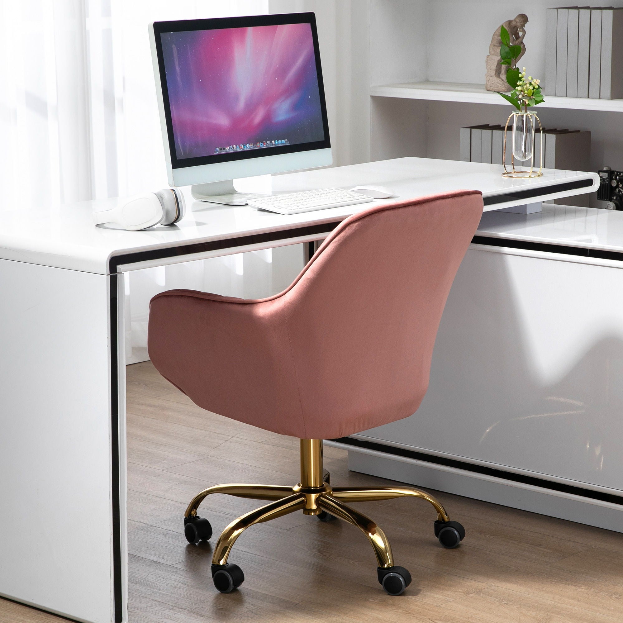 Swivel Chair With High Back, Adjustable Working Chair With Golden Base - Pink