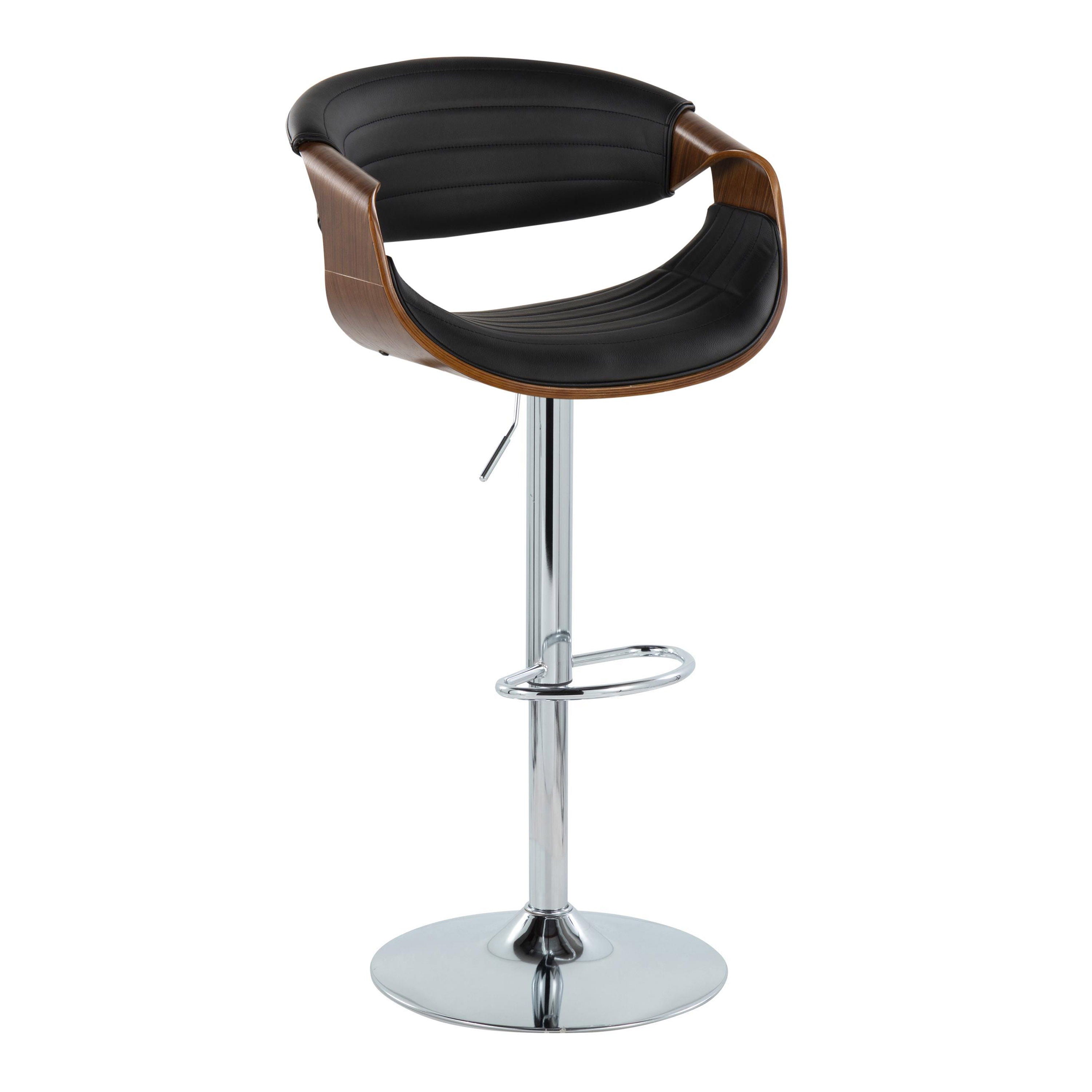 Symphony - Mid-Century Modern Adjustable Barstool With Swivel With Oval Footrest (Set of 2) - Chrome / Walnut / Black