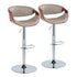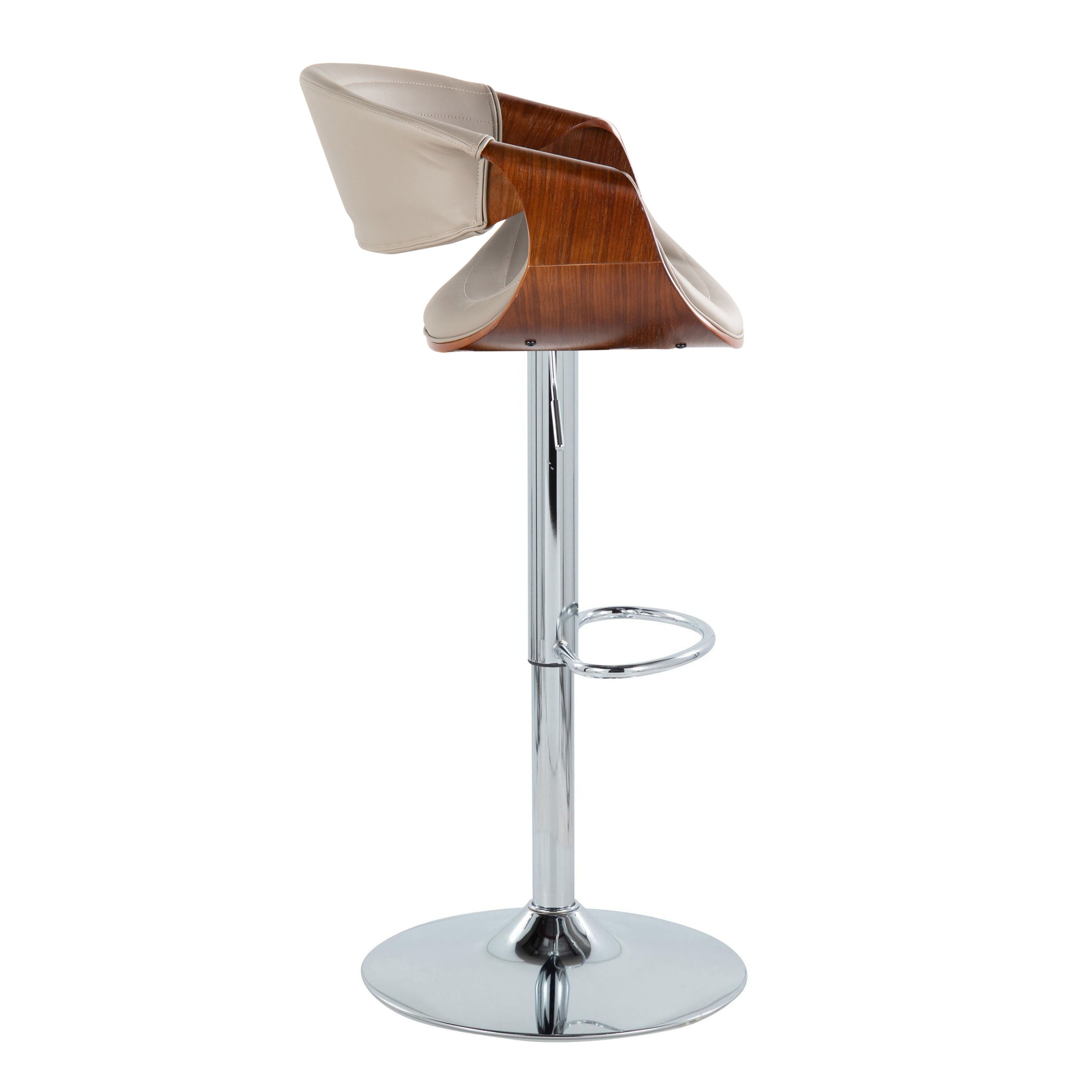 Symphony - Mid-Century Modern Adjustable Barstool With Swivel With Oval Footrest (Set of 2) - Chrome / Walnut / Pewter Gray