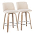 Toriano - Contemporary Fixed Height Counter Stool With Swivel And Round Footrest (Set of 2) - Whitewashed / Cream