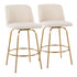 Toriano - Contemporary Fixed Height Counter Stool Swivel With Round Footrest (Set of 2) - Cream / Gold