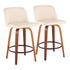 Toriano - Mid-Century Modern Fixed Height Counter Stool & Round Footrest (Set of 2) - Walnut / Cream