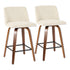 Toriano - Mid-Century Modern Counter Stool, Square Footrest (Set of 2) - Walnut / Cream