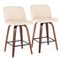 Toriano - Mid-Century Modern Fixed Height Counter Stool With Square Footrest (Set of 2) - Walnut / Cream
