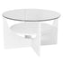• Unique Design: The U-Shaped coffee table features a circular glass top and a seemingly floating circular shelf, creating a distinctive and stylish appearance for any living space.