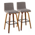Vasari - Mid-Century Modern Fixed Height Barstool With Swivel With Square Footrest (Set of 2) - Walnut / Gray