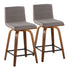 Vasari - Mid-Century Modern Fixed Height Counter Stool With Swivel And Square Footrest (Set of 2) - Walnut / Gray