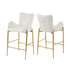 Velvet Counter Height Bar Stools (Set of 2) With Golden Legs And Footrests - White