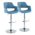 Vintage Flair - Mid-Century Modern Adjustable Barstool With Swivel With Rounded T Footrest (Set of 2) - Chrome / Blue