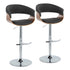 Vintage Mod - Mid-Century Modern Adjustable Height Barstool With Swivel With Rounded T Footrest (Set of 2) - Chrome / Walnut / Charcoal