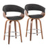 Vintage Mod - Mid-Century Modern Fixed Height Counter Stool With Swivel With Round Footrest (Set of 2) - Walnut / Charcoal