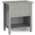 • Features two (2) spacious drawers, open bottom storage area, brushed nickel drawer pulls and metal drawer glides